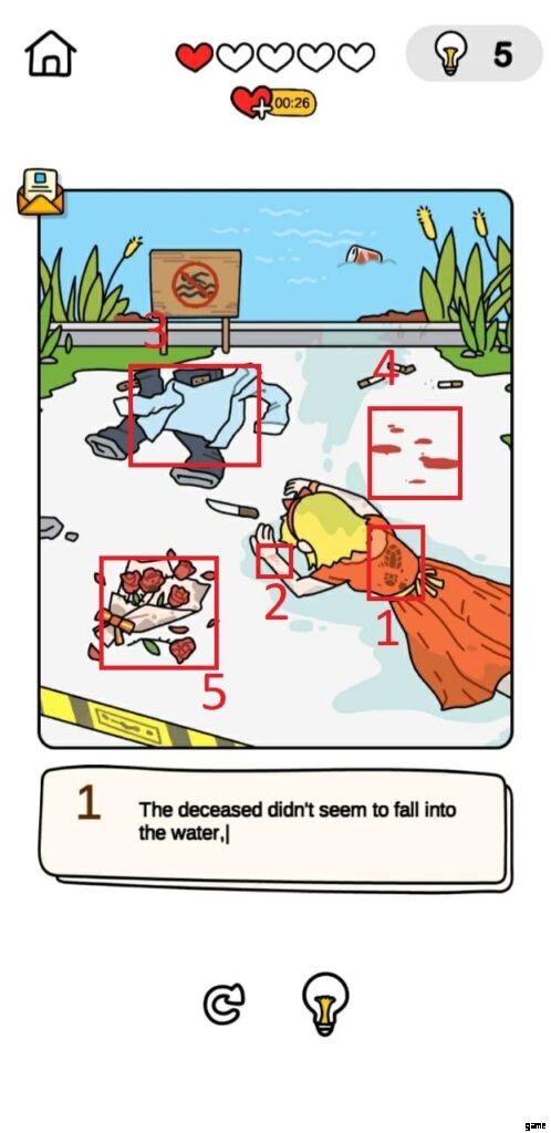 Brain Out Detective レベル 7 には「ストレンジ ドラウニング ケース」が含まれています 」人々は女性の体を発見し、謎を解くようにあなたを招待しました。隠しオブジェクトを見つけるのは簡単ではありません。したがって、次のシーンのロックを解除するには、質問を注意深く読んで回答する必要があります。