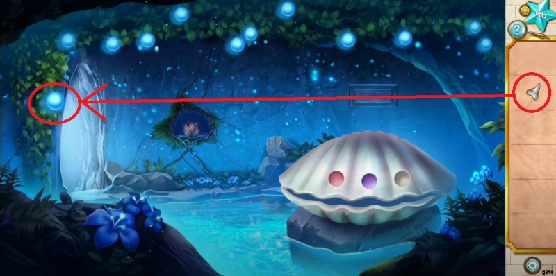 洞窟は美しく、3 つの宝石が入った巨大な殻を持っています。シーンを魅力的にするために、いくつかの光るオーブがシーンに固定されています。