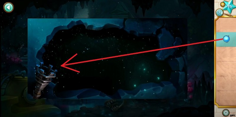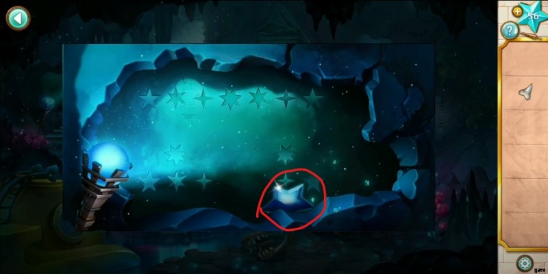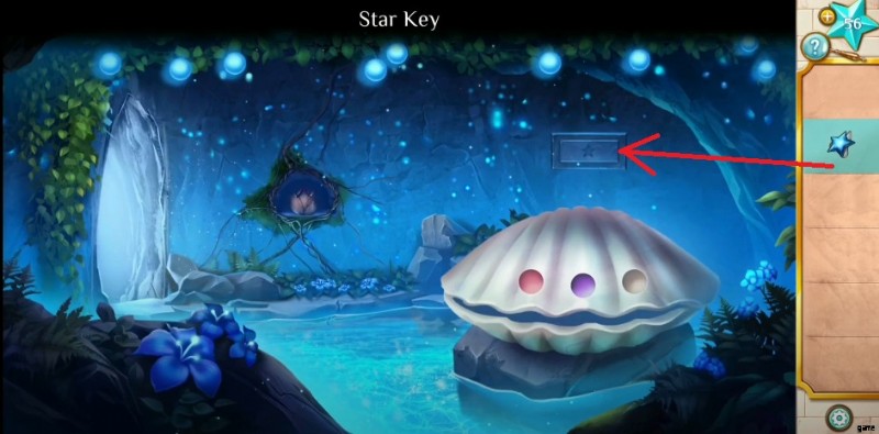 - 洞窟に入り、星を選択し、シェルの後ろのパネルに配置します。