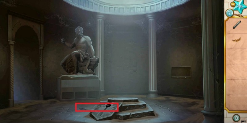 - 戻るボタンを押してホールに行き、階段をタップして 2 階に行きます。 Select the Gemstone, tap the bust to pick it up, place the gemstone below it, and get the Crushed Gemstone.