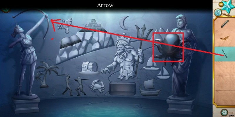 - Select the arrow and tap the woman statue holding a bow. As you fix the arrow to the figure, the statue on the right side drops the Octopus Shield.