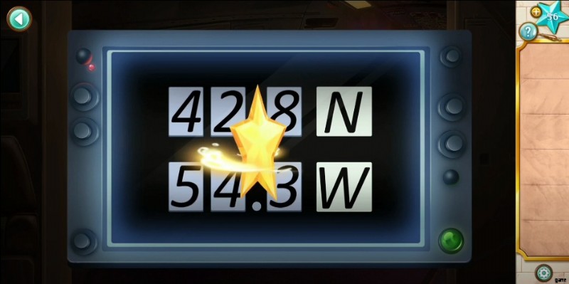 - まず、パイロットの横にある画面をタップして、位置座標を設定します。 次のように:8 N そして 54.3 W .