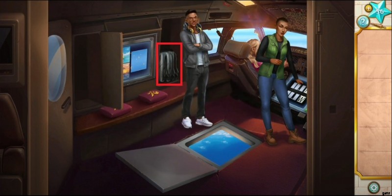 - さて、インベントリに移動し、キーを選択して、ピーターの後ろにあるストレージ キャビネットを開いてパラシュート バッグを探します .