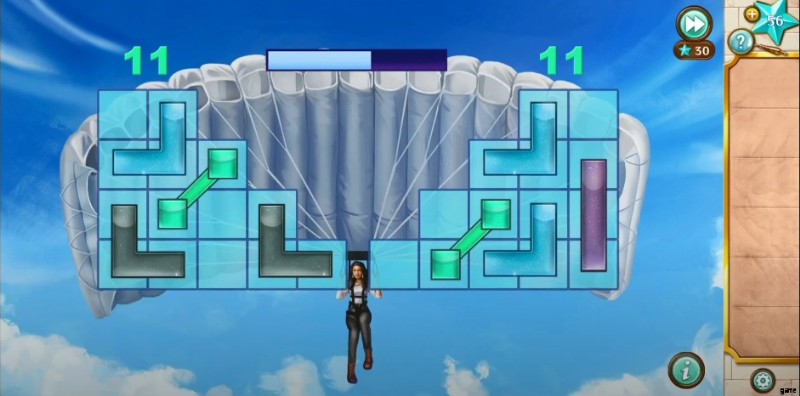 - 次に、パラシュートを選択してすべてのキャラクターに渡します。スカイダイビング中、ゲームはミニゲームを表示します。このゲームの目的は、制限時間内に一方の側から他方の側にピースをドラッグしてバランスを保つことです。