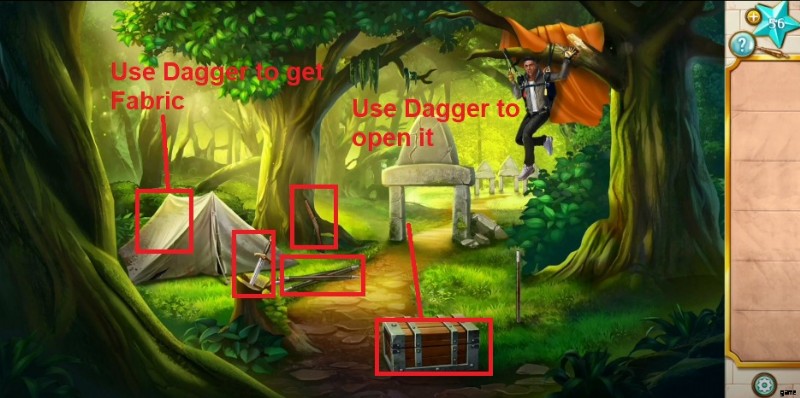 - 豊かな森にたどり着いた後、登場人物たちは隠された物を見つけてピーターを助けます。