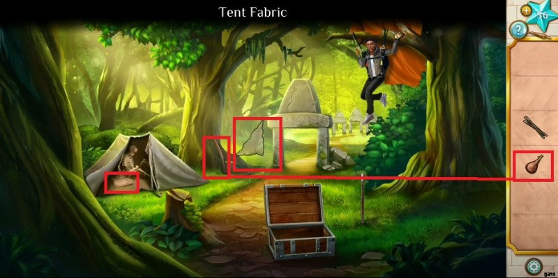 - さあ、短剣を使おう もう一度左側のテントを切り、骸骨を見つけます テント生地を入手 .