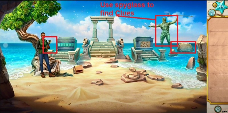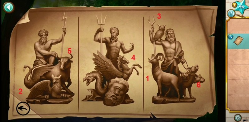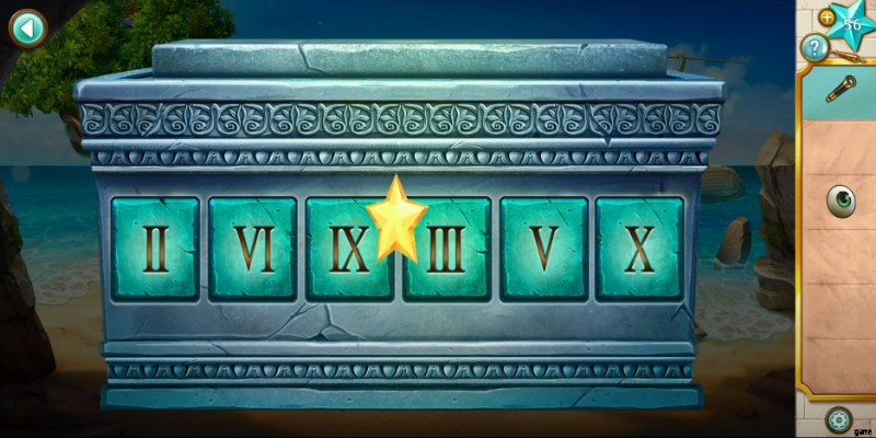 - 次に、スパイグラスを選択し、それを通して彫像を見て、ローマ数字を発見します。その後、左側のボックスをタップして、図で見つけたコード「II」を入力します。 、VI 、IX 、III 、V 、X .」