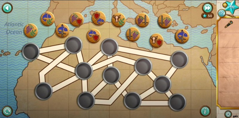 - あなたの前にはトリッキーなパズルが待っています。マップと、さまざまな場面に登場する 3 人の王の画像を参考にして、解決策を見つけ出さなければなりません。画像には、3 種類の異なる形状の 3 つのスティックが含まれています。