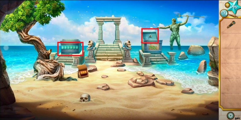 石門のパズルを解いた後、多くの古代のアイテムを操作してトリッキーなパズルを解くことができるビーチに到着します。