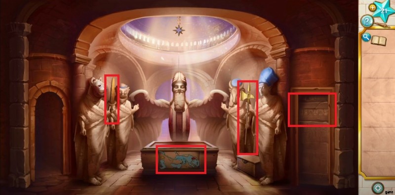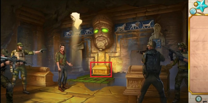 - Upon reaching the Ziggurat Chamber and ending the discussion with soldiers, tap the treasure box to help Professor burns reach there and unlock to play a mini-game.