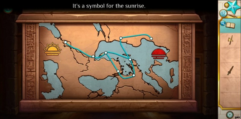 - 主な像の下に印刷された地図をクリックして、日の出のシンボルを見つけてください。