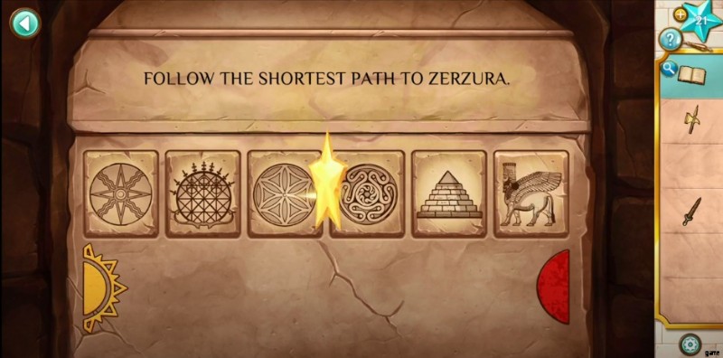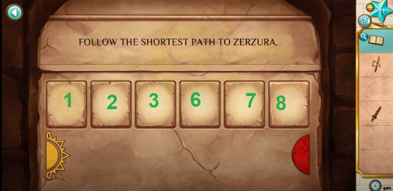 - 次に、「ゼルズラへの最短経路をたどる」という文を含む最初の彫像の右側にあるパズルをクリックします .」