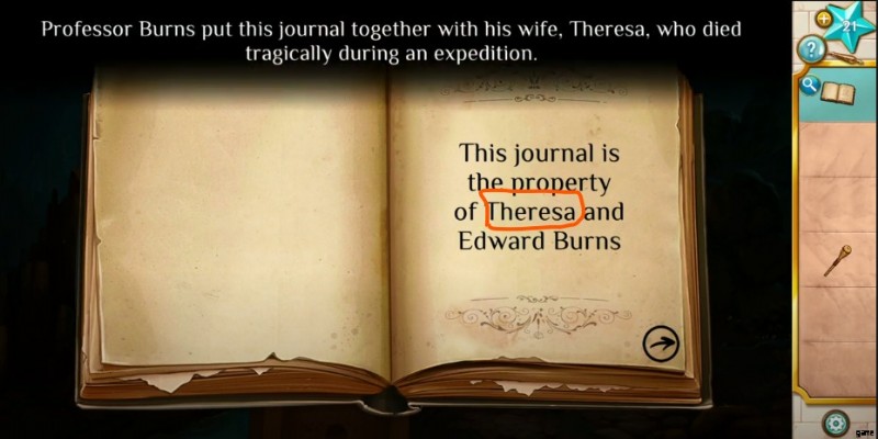 - まず、日誌を手に取ってください バーンズ教授の近くにいて、それを読んで手がかりを見つけてください。