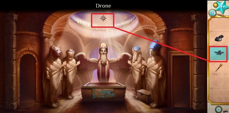 - Return to the temple, select the drone, and tap the start above the statues to release it and collect the Star of Ishtar .