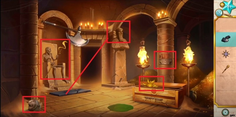 - Visit the Gold Room by tapping the secret passage and using the lighter to light up all lamps.