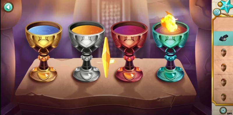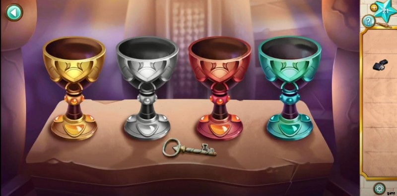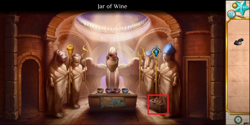 - After that, a platform appears on the spot, holding four cups and a key. Tap the key and use it to open the trunk between two statues to collect a Jar of Wine , along with other jars and One Empty Jar .