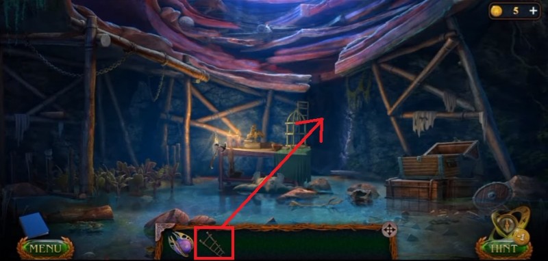- 隠しオブジェクトのリストをクリアしてテーブルを離れ、インベントリにロープを取得します。