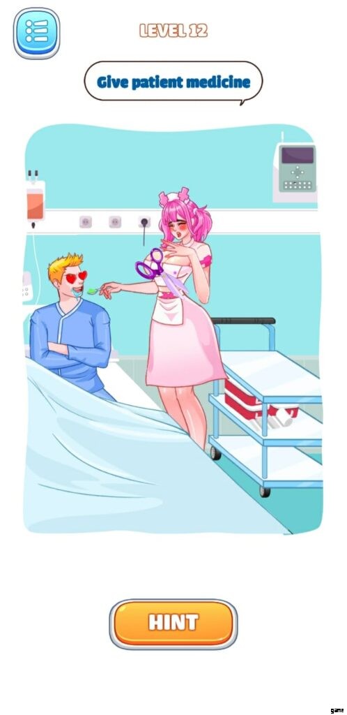 Brain Test:Thinking Game レベル 12 は、看護師と薬の服用を拒否する患者を中心に展開するため、難しい場合があります。看護師が患者に薬を与えるのに役立つ解決策を見つけるのを手伝わなければなりません.