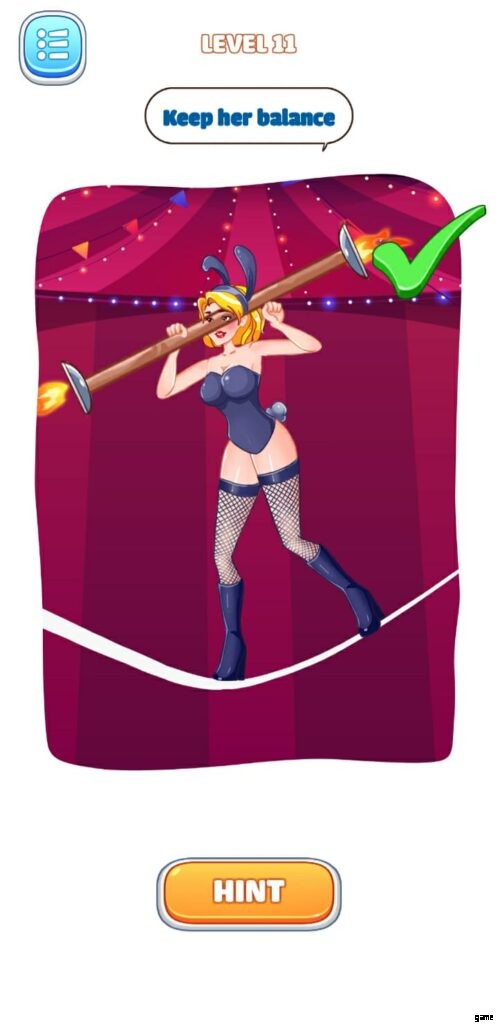 Brain Test Thinking Game レベル 11 を開始する前に、まずバランスを保つ方法を学ぶ必要があります。このゲームでは、女性がロープでトリックを行っています。その間、彼女はバランスを保つためにあなたの助けが必要です.