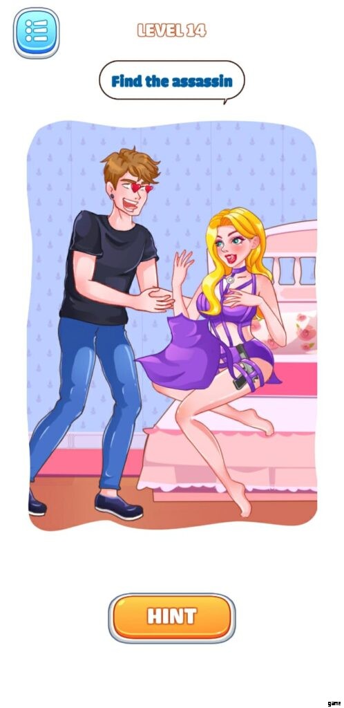 Brain Test:Thinking Game レベル 14 は「暗殺者を見つける」です。このゲームでは、ロマンスを計画している部屋に 2 人だけが表示されます。ここでの最終的な目標は、暗殺者を見つけることです。暗殺者は女の子でも男の子でもかまいません.