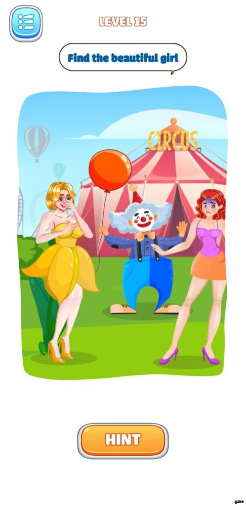 Brain Test:Thinking Game レベル 15 に到達した後、あなたの目的は美しい女の子を見つけることです。レベルが始まると、ジョーカーの近くに立っている女の子を発見しますが、彼女はあなたが探しているものではないようです.