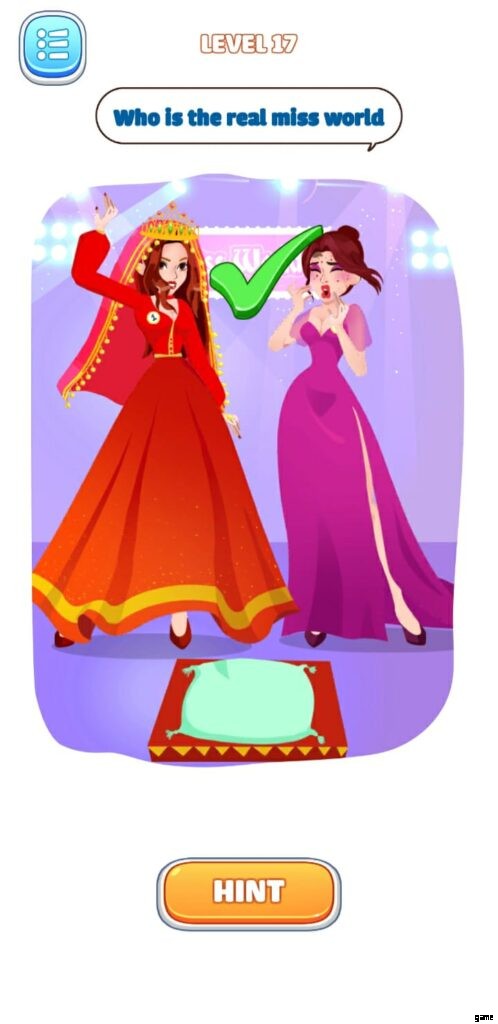 レベル 17 は、本当のミスの世界を見つけることを任されています。両方の女の子の身元を明らかにし、正しい女の子を見つける方法を見つけなければなりません.