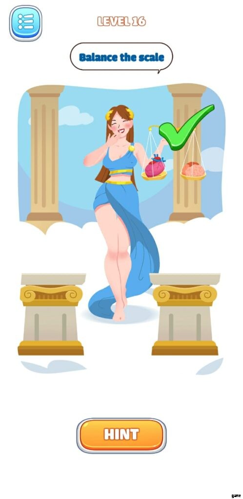 スケールのバランスを取ることは、あなたが考えているほど簡単ではありません。体重計のバランスを取るには、最適な重量を見つける必要があります。ゲームはパズルを開始し、スケープの右側に脳を表示し、与えられたアイテムのいずれかを使用してバランスを取るように求めます.