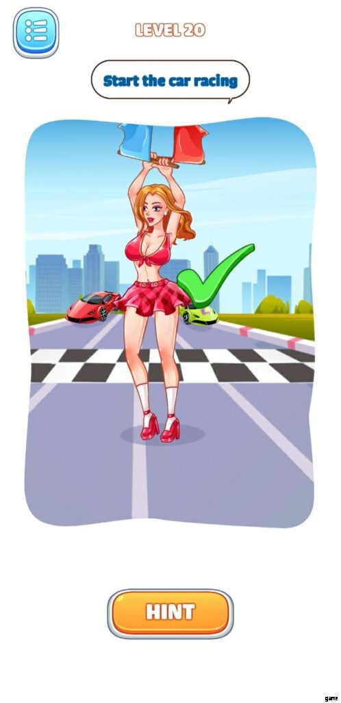 Brain Test:Thinking Game レベル 20 では、女の子がレースを始めるのを手伝わなければなりません。画面の下部に 3 つの異なるアイテムがあります。