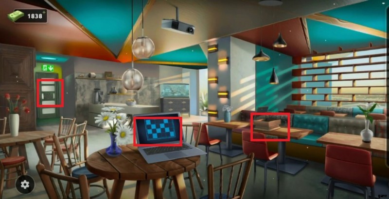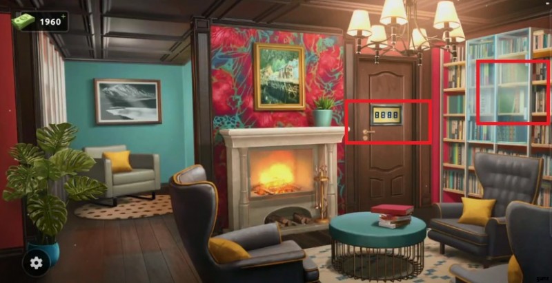 - 右側の本棚に向かい、すべてのボックスをチェックして、ドアのロックを解除するために必要なコードを見つけてください。