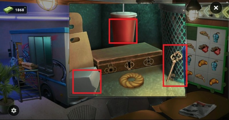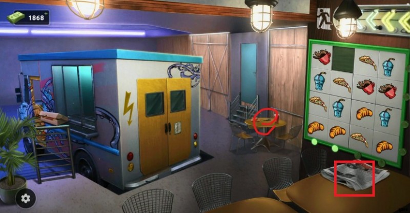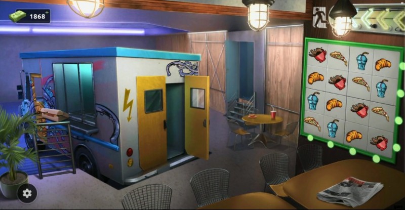 100 Doors Escape from Work レベル 42 は、顧客が利用できるテーブルと椅子がいくつかあるレストランで行われ、バンがキッチンの役割を果たします。