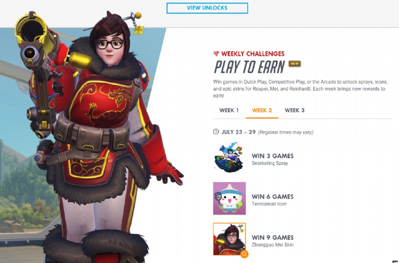 Zhongguo Mei スキンを入手するプロセスは複雑ではありません。プレーヤーは、クイック プレイ、対戦プレイ、またはアーケード ゲーム モードのいずれかで合計 9 つのゲームに勝つ必要があるためです。 Zhongguo Mei スキンを自分のコスメティック アイテム コレクションに追加しようとしている人は、7 月 23 日から 7 月 29 日まで 9 試合に勝つ必要があります。オーバーウォッチ サマー ゲーム 2019 イベントでは、この第 2 週の課題を達成するのにそれほど苦労する必要はありません。