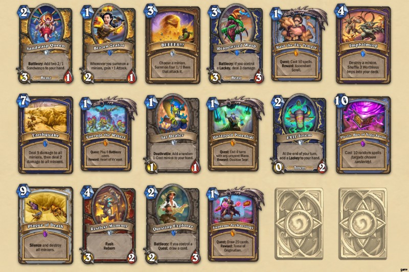 ハースストーンは、今日の業界で最も人気のあるビデオ ゲームの 1 つになり、拡張を通じて新しいカードをリリースすることで、プレイヤーを呼び戻し続けています。これは、Saviors of Uldum 拡張版が Hearthstone で発売され、プレイヤーが試してみる新しいカードの配列全体をもたらす場合に当てはまります。 Hearthstone Saviors of Uldum 拡張に含まれるカードに興味がある場合は、タイトルの今後の拡張で現在公開されているすべてのアイテムを以下で確認してください。