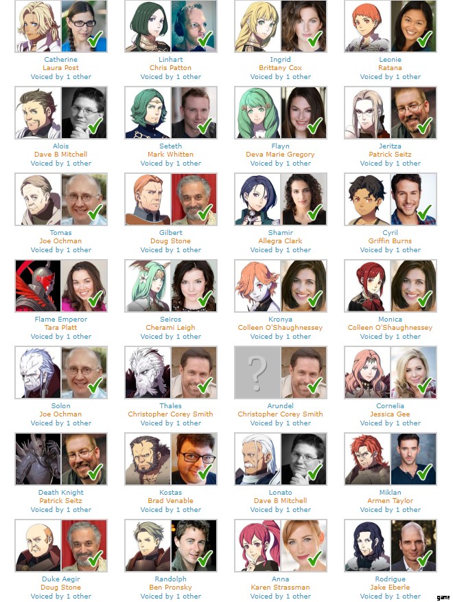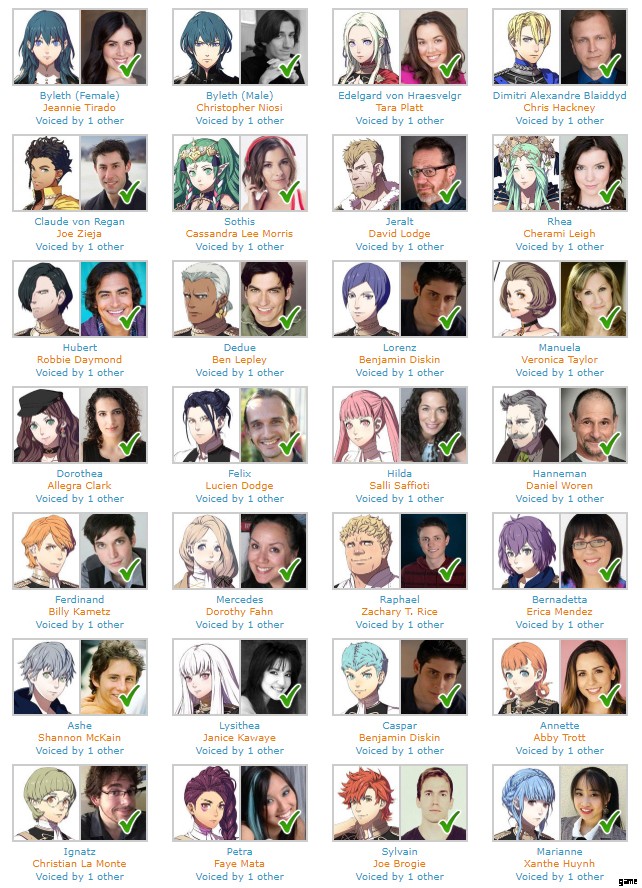 このゲームでは、プレイヤーが楽しめるユニークなキャラクターがたくさんあるため、スピーチに関しては、これらすべての個人に個性を与えるのを助けるために必要な人がたくさんいました.ただし、これらの人々の一部は、声優の世界の俳優にとって一般的な慣行であるファイアーエムブレムの複数のキャラクターに才能を提供していることに気付くでしょう。