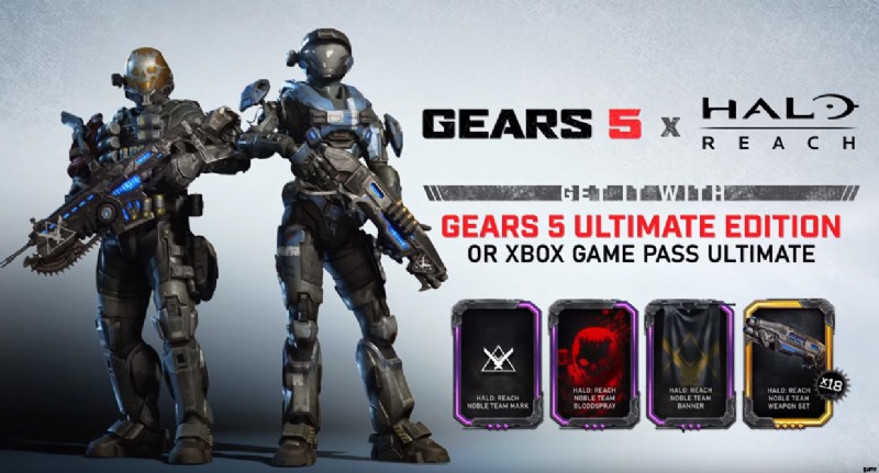 Gears 5 で 2 人の Halo:Reach キャラクターとしてプレイできることに加えて、プレイヤーはノーブル チーム マーク、ノーブル チーム ブラッドスプレー、ノーブル チーム バナー、ノーブル チーム ウェポン セットも手に入れることができます。