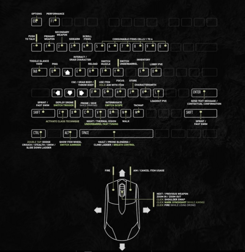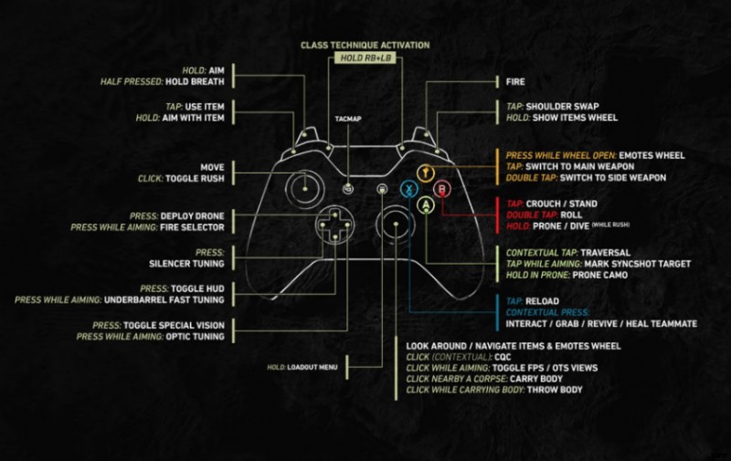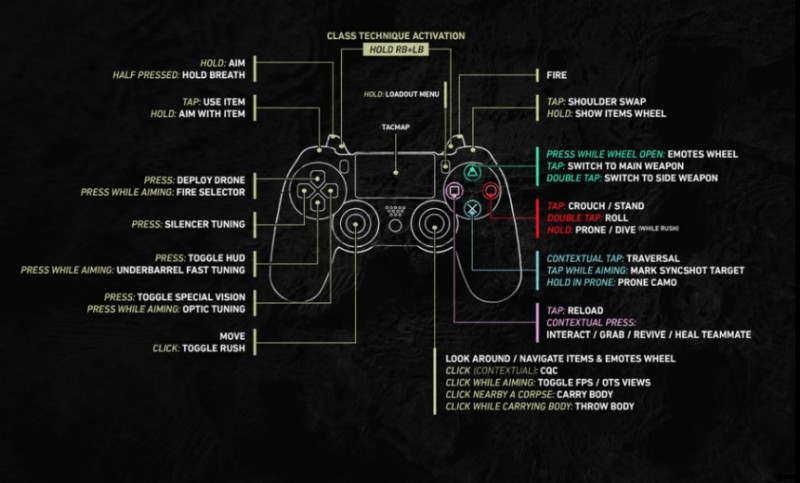 以下の画像で、PC、PS4、および Xbox One 用のゴーストリコン ブレイクポイントの制御スキームを見つけることができます: