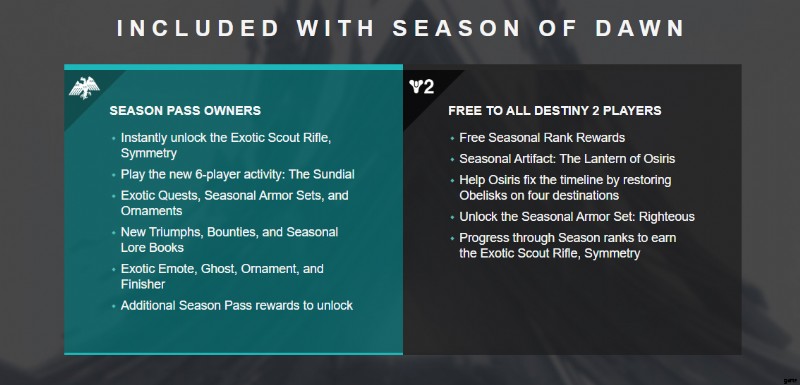 - Destiny 2 でドーン パスのシーズン パスの報酬が明らかに