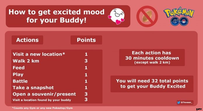 コンパニオンを興奮させ、その恩恵を享受するためにプレイヤーができるさまざまなアクティビティがあります。これらのアクティビティのそれぞれが、相棒を興奮させるためのポイントを与えてくれます。トレーナーがコンパニオンをこの特定の状態にするには、合計 32 ポイントが必要です。各アクティビティには、2 km のウォーキング以外に 30 分のクールダウンもあります。そのため、アクティビティを完了する前に少なくとも 30 分間待つ必要があります。