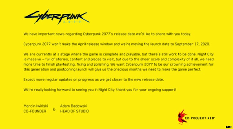 CD Projekt Red は、リリース日の延期に関する公式発表で、「Cyber punk 2077 をこの世代の最高の成果にしたいと考えています。発売を延期することで、ゲームを完璧にするために必要な貴重な月を得ることができます.声明の全文は以下にあります: