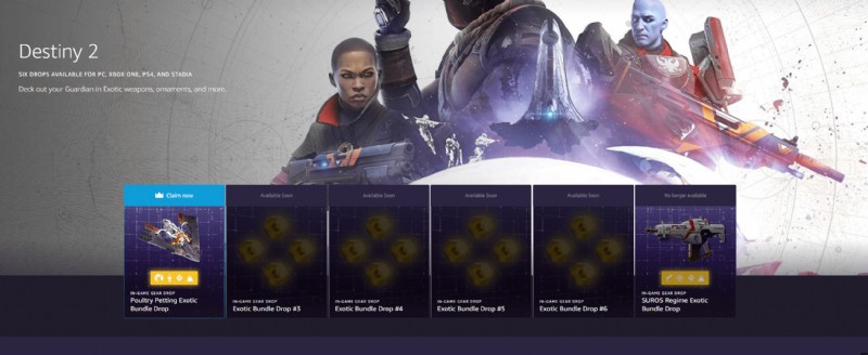 Destiny 2 Twitch Prime 家禽ふれあいエキゾチック バンドルの入手方法