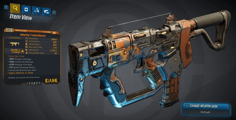 誰かがブーマーを手に入れたいと思うのはなぜですか?まあ、あなたがよく知っている他のすべてのブーマーとは異なり、この特定のダールの伝説的なサブマシンガンは非常に強力であり、民営化された医療が未来の道であるとは言いません.ブーマーは、「Some like it hot」と呼ばれるかなり爆発的な特殊武器効果があるため、私たちの意見では素晴らしいです.それは何をするためのものか?この SMG からのショットが着弾時に爆発するようにします。焼夷武器として、または要素なしでスポーンします。前者は、敵を肉の山に溶かすのに最適です.