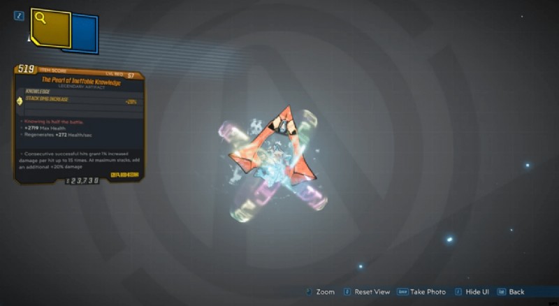 さて、あなたが実際にここにいる目的に進みましょう。 Borderlands 3 Pearl of Knowledge とは何か、どのように手に入れることができるかについてのアドバイス。まあ、あなたは運がいいです。言い表せない知識の真珠は、ご想像のとおり、伝説のアーティファクトです。この真珠は実際にはそのような形をしていませんが、致命的な殺人者に変わるものを作るのを助ける職人を判断するつもりはありません.したがって、Pearl of Ineffable Knowledge の特殊効果は「知識は戦いの半分」と呼ばれ、その仕組みは、ターゲットに連続してヒットすると、ヒットごとに 1% のダメージ ボーナスを最大 15 スタックまで与えるというものです。最大スタックでは、追加の 20% のダメージ ボーナスがあります。これは、弾丸を物に向けていて、手と目の協調がある限り、ダメージに 35% のボーナスを得ることができることを意味します。