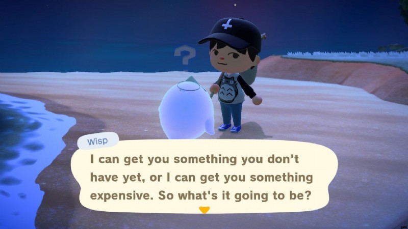 5 つの Wisp スピリッツを信頼できる新しい仲間に返した後、これら 2 つのオプションのいずれかから報酬を選択するオプションが表示されます。高価なものか、新しいものです。もちろん、ギャンブルなしではどうぶつの森とは言えません。幽霊は人間の通貨であまり価値がないので、ウィスプが高価だと思うものは価値がないかもしれません.何か新しいオプションを選択すると、常に以前に所有したことのないものになるため、コレクターにとっては良い選択かもしれません.