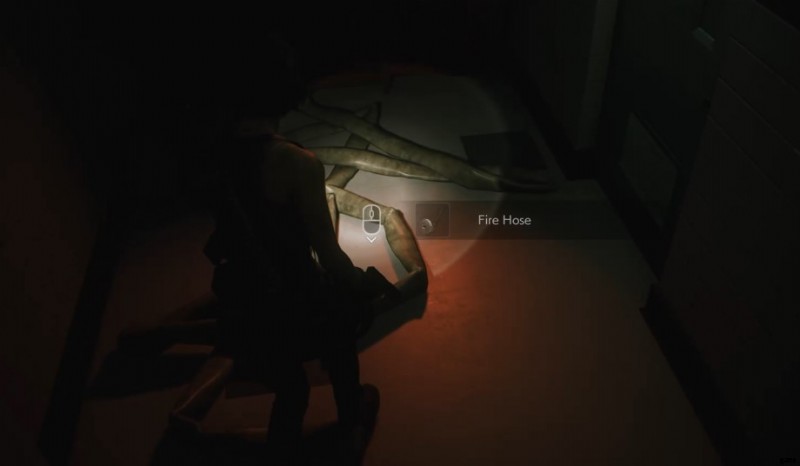 プレイヤーは、消火ホースを見つける途中で上の画像のホールの終わりに到達すると、右に開く廊下を下ることができます。