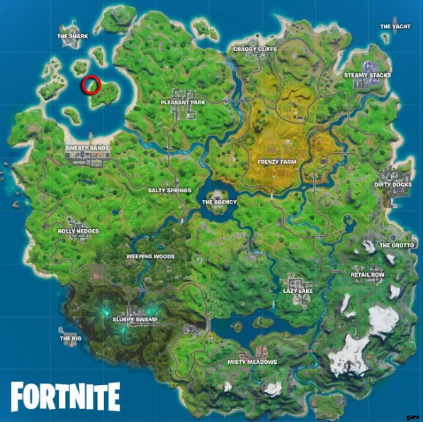 プレイヤーは、最大の島にあるスウェットサンドの北にあるコンサートのステージを見つけるでしょう.島の北西の角の水中に建設されています。このチャレンジを完了するために必要なことは、ステージに着陸して数秒間そこに立つことだけです。その後、このチャレンジを完了するとクレジットを受け取り、イベント バナーを受け取ります。