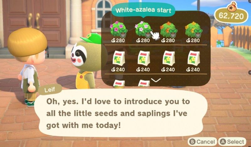あなたの島の町の広場にある彼の園芸店にLeifを訪ねると、Leifはさまざまな種類のこの箔を販売していることがわかります。彼らは島を飾るために購入します。あなたが彼を訪ねたときにLeifが売りに出しているかもしれないものは以下にあります: