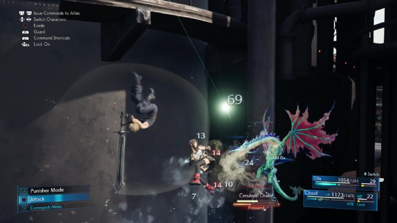 Aero がオンになっていない場合、戦闘は不可能ではありませんが、時間がかかります。火と雷の呪文もドレイクをよろめかせるのにうまく機能しますが、エアロよりも数回多くのキャストが必要です.さもなくば、クラウドとティファの空中攻撃ストリングスで、繊細かつ暴力的な空中バレエを指揮することになります。