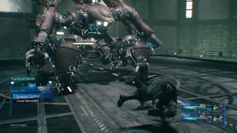 Scorpion Sentinel は事実上、第 1 章の最後のボスです。これは、リメイク版の新しい戦闘システムの基本的な拡張チュートリアルとして機能し、Cloud と Barret がお互いにゲームの機能を怒って説明します.