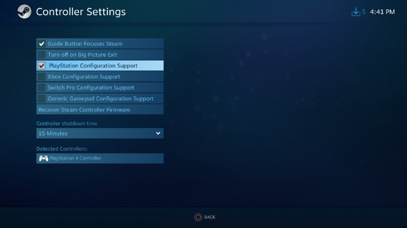 Steam の Big Picture モードを使用して、Steam ライブラリで使用する PS4 コントローラーをセットアップできます。これは、リビング ルームのテレビで Steam ゲームをプレイしている状況向けに設計されていますが、コンピューターのデスクにいる場合でも同様に機能します。