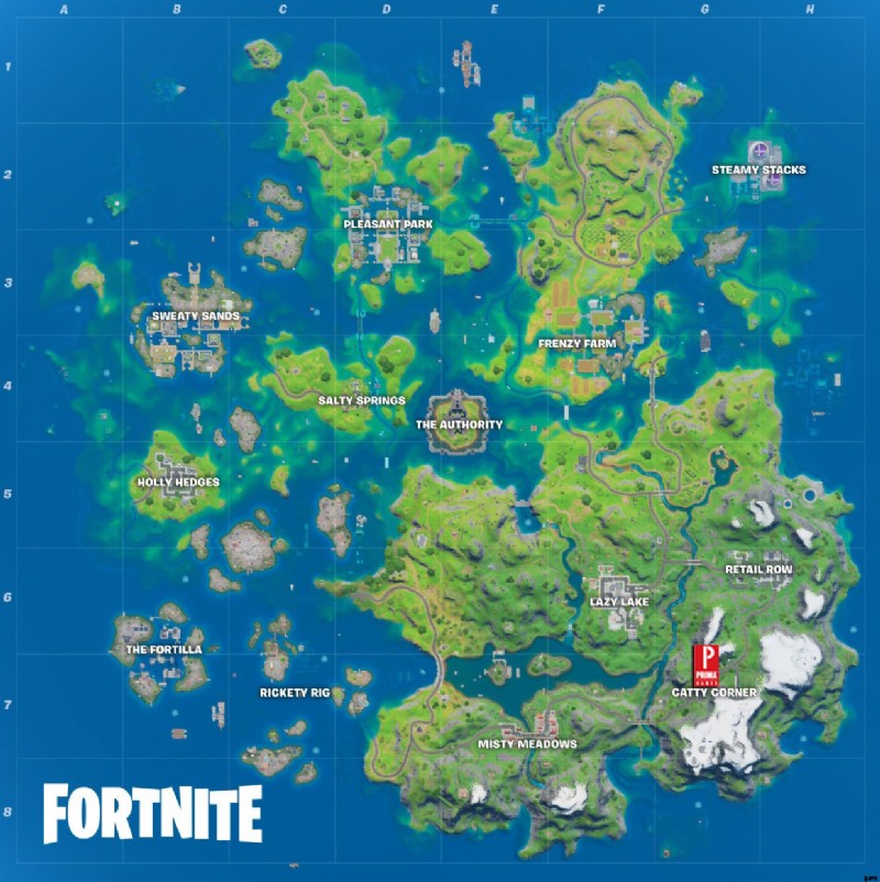 プレーヤーは、このエリアの場所が、チャプター 2 シーズン 3 のマップで Catty Corner の場所のすぐ北にあることがわかります。この特定のエリアは、下の画像で見つけることができます: