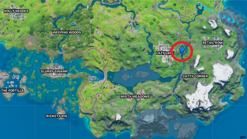 Fortnite の 3 つの主要なランディング ポイントである Lazy Lake、Retail Row、Catty Corner の中心に位置していることが役立ちます。